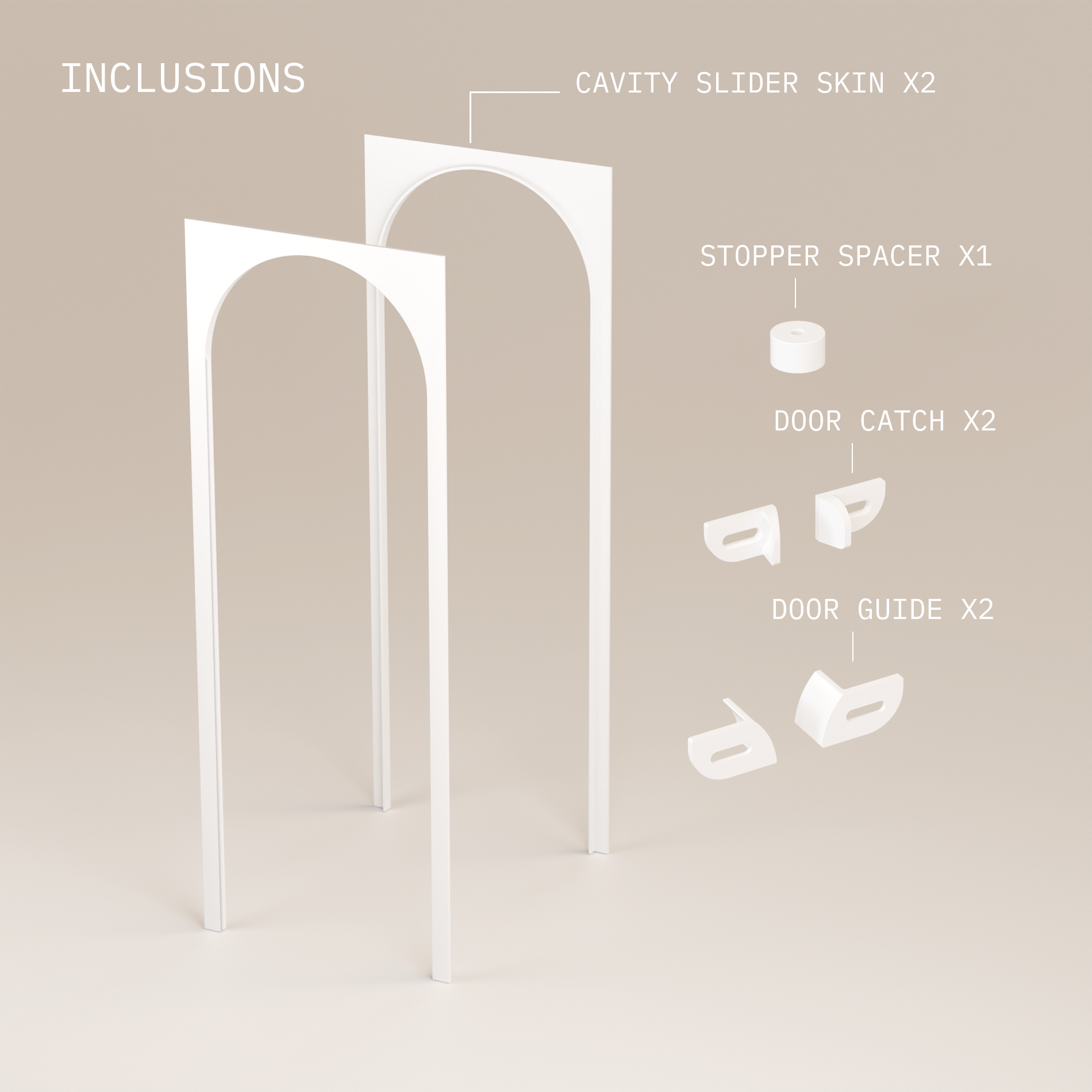 Our Saba Retrofit Kit transforms a standard square cavity opening into a clean architectural arch. No structural changes. No complex carpentry.