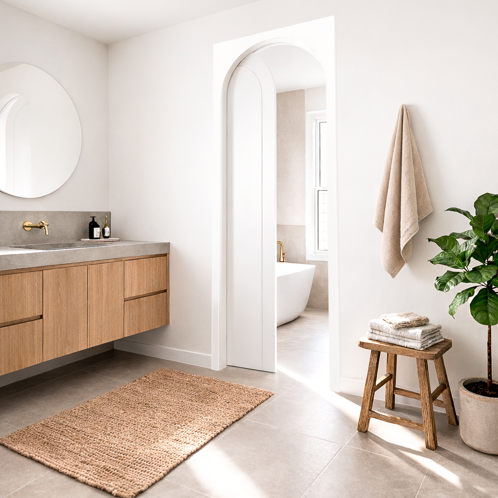 The Saba Arch Walk-Through is a sculptural feature designed to elevate room transitions with bold simplicity. Available in various sizes, it aligns perfectly with our Arch Doors for seamless integration as a walk-through or full jamb set. Ideal for framing open passages or doorways, it adds softness and form to any interior.